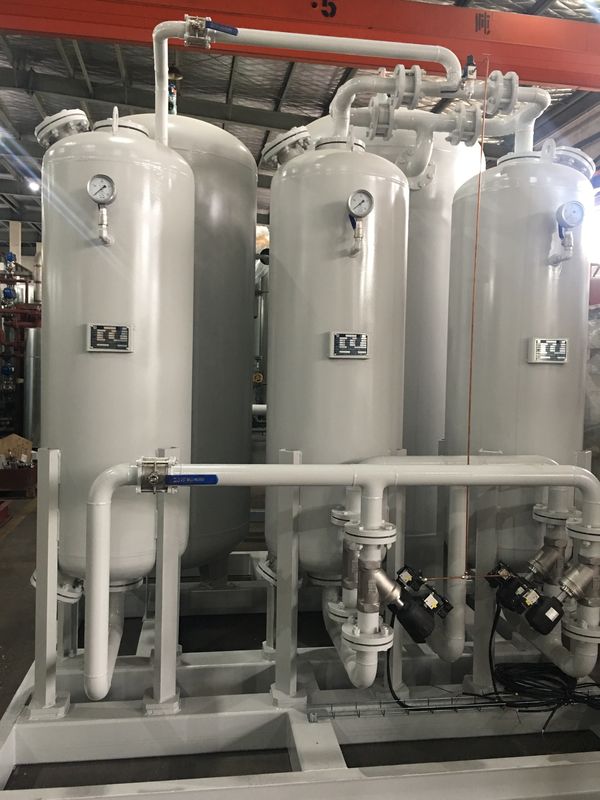 압축 공기는 트윈 타워 PSA 모듈을 통해 자동 전환 밸브와 연결됩니다. 냉동 건조기를 통과 한 후 공기는 건조됩니다.마른 압축 공기는 그 다음 Zeolite 분자 시트 (ZMS) 의 침대에 접촉합니다., 질소 분자를 선호합니다.